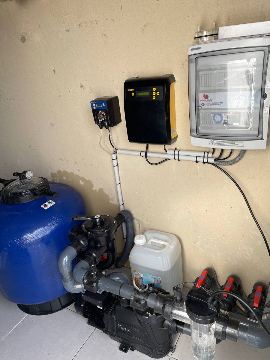 Le résultat en eau est vraiment parfait et l'ensemble se fond a merveille avec la maison et les environs, le rendu du pvc vert olive donne une eau plus naturel.